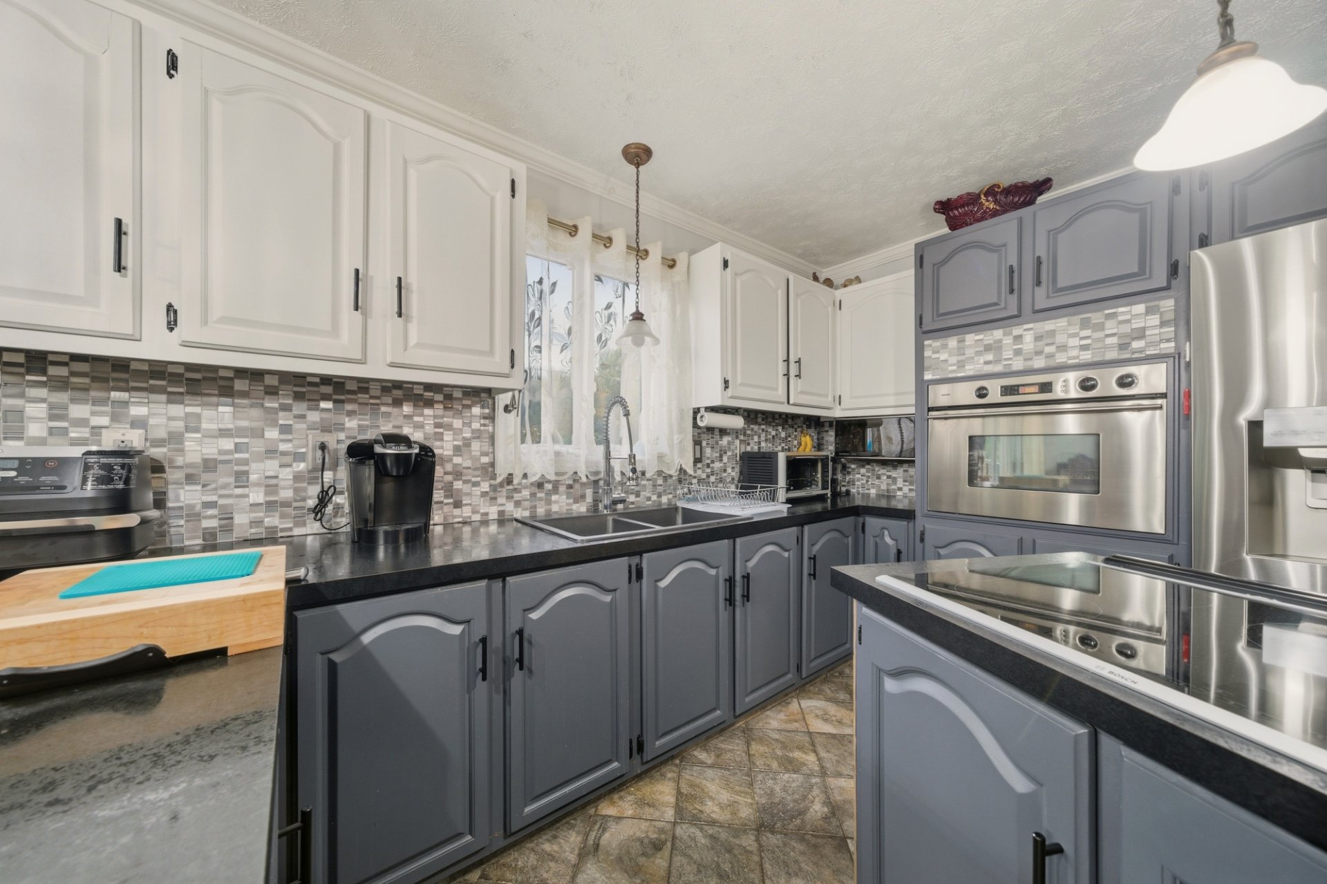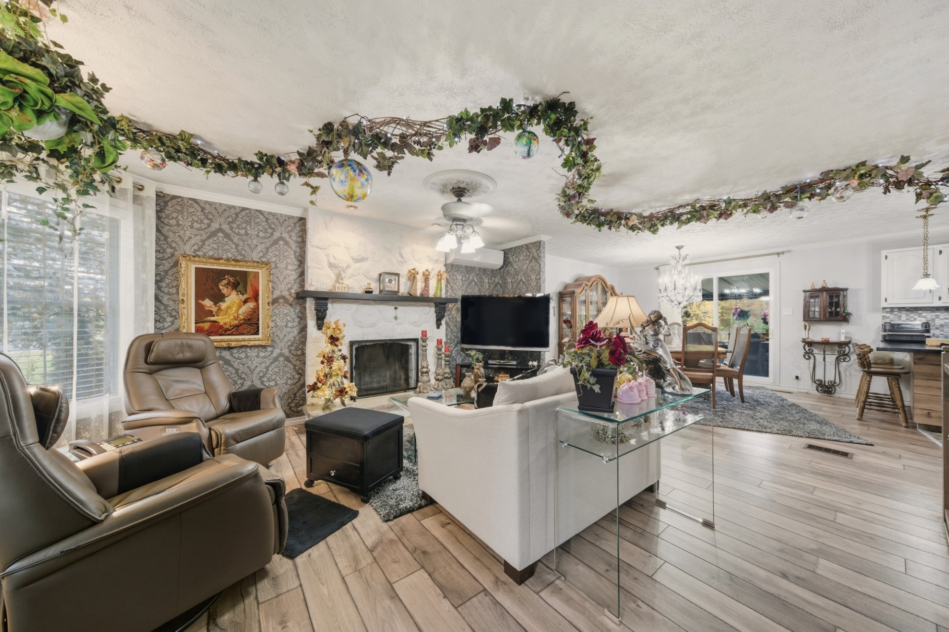 Inclus : Stores, pôles, four encastré de marque Bosch, plaque de cuisson encastrée avec hotte de marque Bosch, luminaires et lustres. Tout le bois dans le sous-sol.
